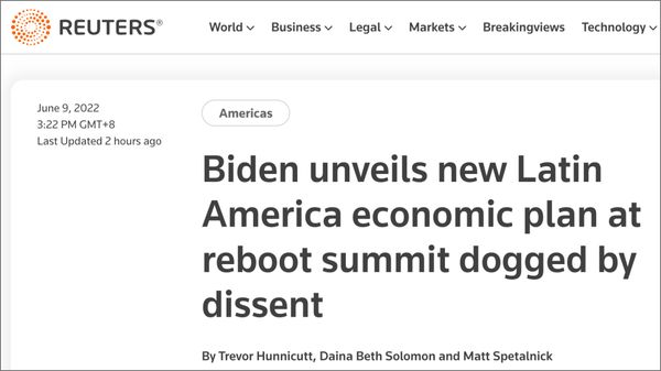 无论是拜登提出了多么“雄心勃勃”的美洲经济计划,还是沙利文高调放话要和中国争夺地区影响力,但外界对于这场美洲峰会的评价和形容并不怎么正面。