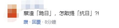 在中时新闻网评论区,也有岛内网友留言写下自己的看法。有人讽刺蔡,“怎敢提‘抗日’?!” ↓