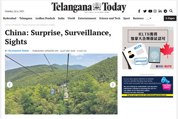 印度《今日泰伦加纳邦报》7月3日文章,原题:中国:惊讶、监控和风光