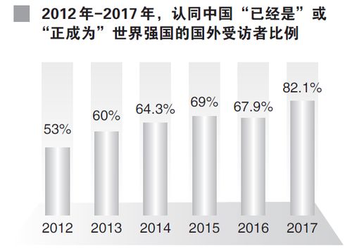 2017年,西班牙、法国等更多国家的受访者参与到调查中来,结果显示,超过82%的受访者认为中国已进入或正在进入世界一流强国行列。