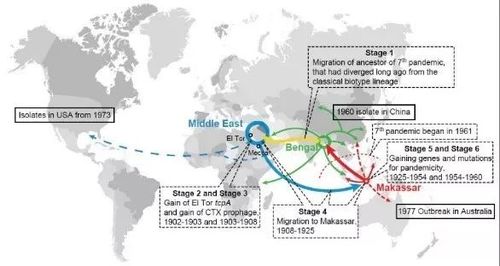 前六次霍乱大流行都是由O1群霍乱弧菌的古典生物型(Classical biotype)引起。