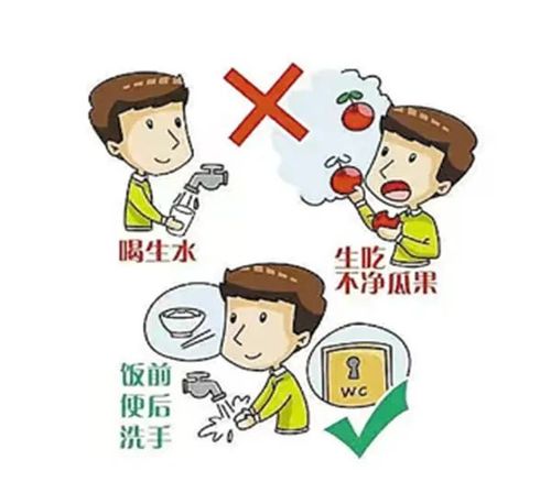 五不要:生水未煮不要喝,无牌餐饮不光顾,腐烂食品不要吃,暴饮暴食不可取,未消毒物品不要碰。