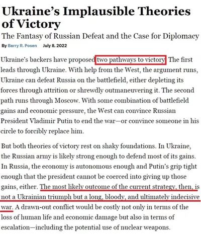 环球深观察指出,美国要在俄乌冲突问题上一条道走到黑,无疑是在配合“确保乌克兰在战场上获胜”的既定目标。评论援引美国《外交》杂志的观点指出,美国曾设计了两条“通往胜利”的道路,一是帮助乌克兰在战场上击败俄罗斯;二是借助军事胜利和经济制裁迫使俄罗斯主动退让甚至发生权力更迭。但这两种设计都建立在薄弱的推理基础之上。根据这篇文章的观点,俄军在战场上比想象的更强韧,而且俄罗斯足够自主的经济体系决定了美西方制裁不太可能动摇俄政权的稳定。因此,美国当前战略最有可能导致的结果不是乌克兰的胜利,而是一场“漫长血腥的持久战”。