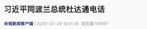 杜达表示,我很高兴今年2月赴华出席北京冬奥会开幕式并同你举行了很好的会见,至今记忆犹新,印象深刻。尽管受到新冠肺炎疫情影响,我们达成的重要共识正在得到落实,双方有关部门保持密切沟通,相关领域合作不断推进。波方高度重视中国的国际地位和作用,高度重视发展对华关系,愿同中方一道,推动双边经贸、物流、互联互通等领域合作取得更多成果,欢迎更多中国企业赴波兰开展投资合作。波方愿继续积极促进中东欧国家-中国合作和欧中关系发展。