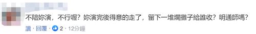 有网友问道:不陪你演,不行哦?你演完后得意地走了,留下一堆烂摊子给谁收?↓