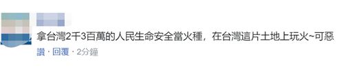 对于佩洛西坚持访台,有岛内网友表示:她拿台湾2300万的人民生命安全当火种,在台湾这片土地上玩火,可恶。↓