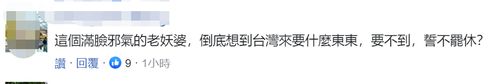 还有网友说:“这个满脸邪气的老妖婆,到底想到台湾来要什么东东,要不到,誓不罢休?”↓