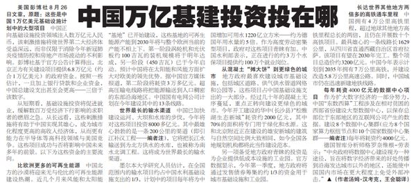 美国彭博社8月26日文章,原题:这些是中国1万亿美元基础设施计划中的大型项目