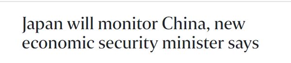 去年10月,岸田文雄正式当选日本首相时,日本共同社就披露,岸田将设立一个经济安全大臣的职务,首要任务是为了“保护敏感技术不被中国盗取”,以及缓解日本对中国的过度依赖。