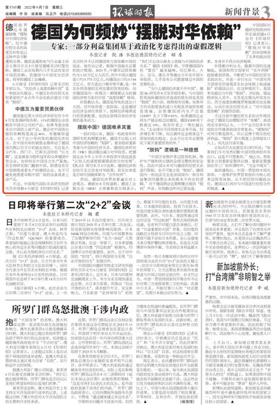 不过,中国现代国际关系研究院研究员孙恪勤6日接受《环球时报》记者采访时并不认同德国单方面依赖中国的说法。他告诉记者,根据中国海关总署的统计数据,2021年,中德双边贸易额约为1.52万亿元人民币,其中中国从德国进口约0.775万亿元,向德国出口约0.744万亿元。双方进出口额非常平衡,是一种互补性很强的互利互惠的贸易结构。而非德国国内一些观点一厢情愿认为的德国经济单方面对中国“高度依赖”格局。