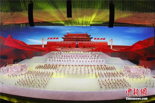 2021年,庆祝中国共产党成立100周年文艺演出《伟大征程》在国家体育场盛大举行。图为舞蹈《开国大典》。中新社记者 韩海丹 摄