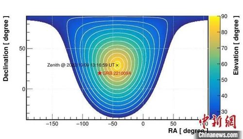 GRB 221009A爆发时刻在LHAASO视场中的位置。中科院高能所 供图