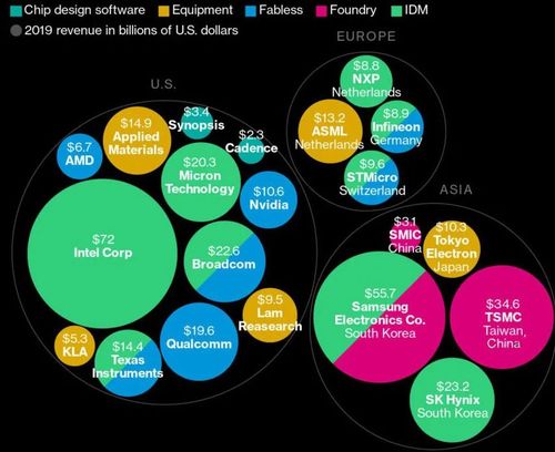 半导体产业大厂分布,图片来源:彭博社