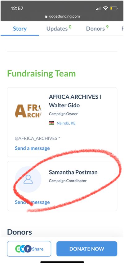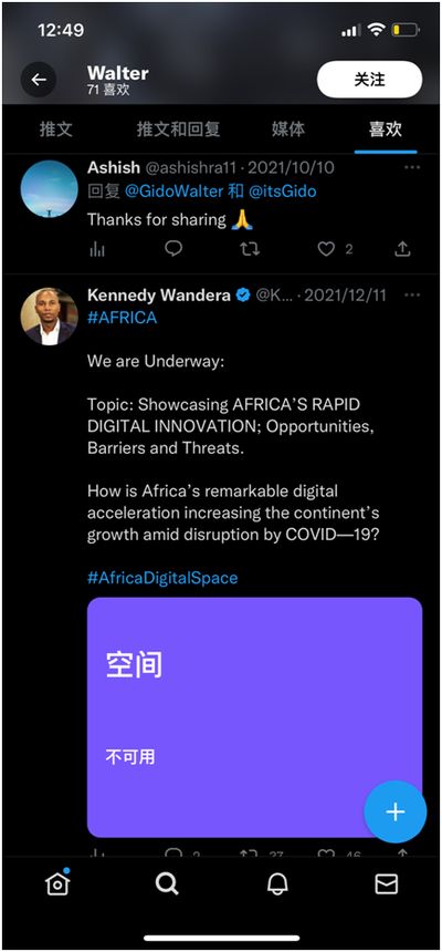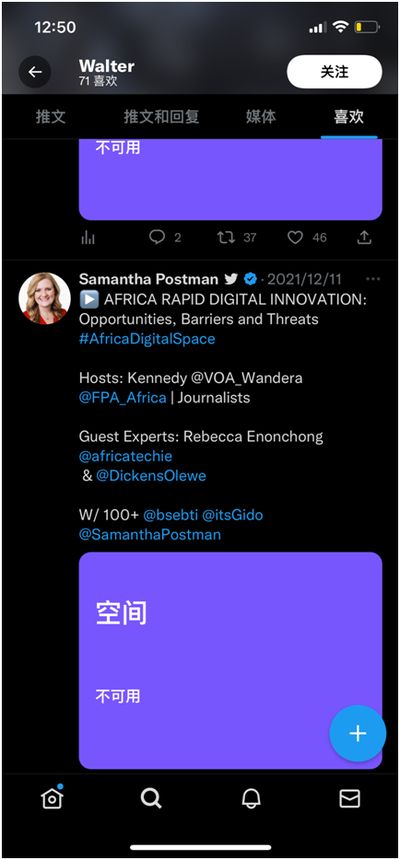 Africa Archives所谓的创始人Gido,在推特上有两个代表其身份的账号。其中一个账号,明确关注了两个非常有标志性的人物,一个是VOA非洲分部的负责人Kennedy Wandera,另一个是个加拿大投资商Samantha Postman。