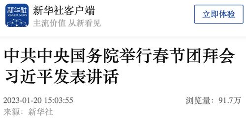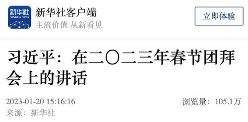 新华社北京1月20日电 中共中央、国务院20日上午在人民大会堂举行2023年春节团拜会。中共中央总书记、国家主席、中央军委主席习近平发表讲话,代表党中央和国务院,向全国各族人民,向香港特别行政区同胞、澳门特别行政区同胞、台湾同胞和海外侨胞拜年。