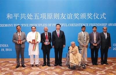 昨日,习近平在新德里会见印度友好人士、友好团体代表,并颁发和平共处五项原则友谊奖。新华社记者 庞兴雷 摄