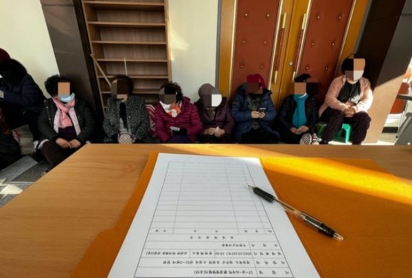 2日,庆北星州居民等堵在福利会馆2楼居民说明会举办场所前,国防部相关人士无法进入。 图源:韩媒