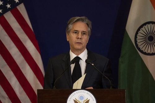 当地时间2023年3月2日,印度首都新德里,G20外长会期间,美国国务卿布林肯出席新闻发布会发表讲话。