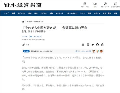 台媒引述的消息出自《“还是喜欢中国”:台军的盲区》这篇《日本经济新闻》的报道。在台湾《中国时报》、《自由时报》等多家媒体的解读下,他们声称这篇文章指控“九成台军退役军官卖情报”。经过这番转述,台湾舆论一片哗然。