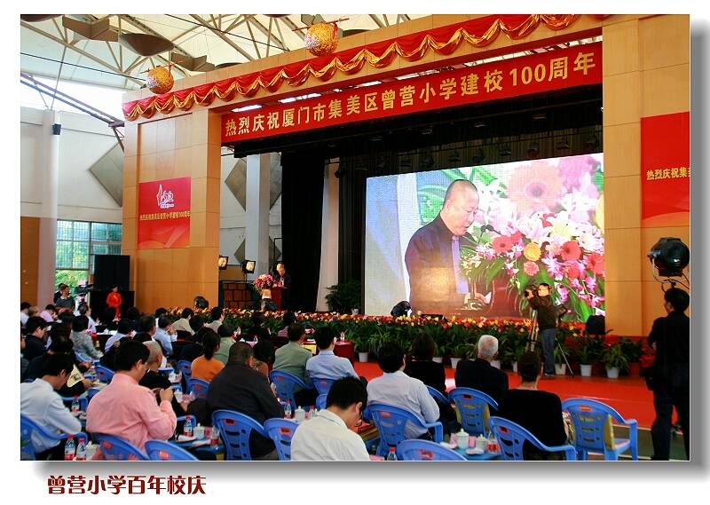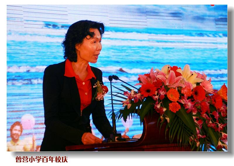 曾营小学沈怡蓉校长在LED大屏幕视频的演绎下作了一场精彩的演讲