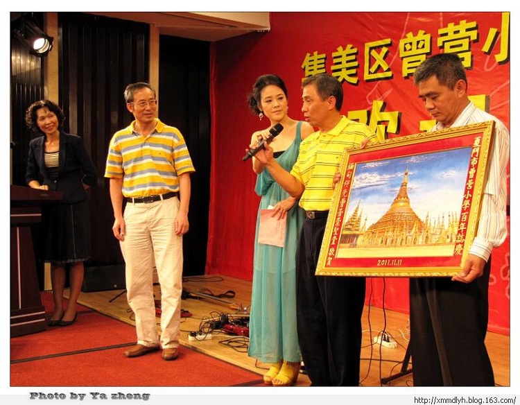 仰光曾营崇圣堂理事长向厦门曾营小学赠送大金塔宝石画