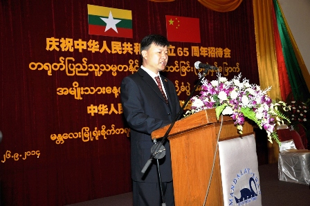 中华人民共和国驻曼德勒总领事馆举行65周年国庆招待会(萧珊珊、李美新报道;侯宝强摄影)