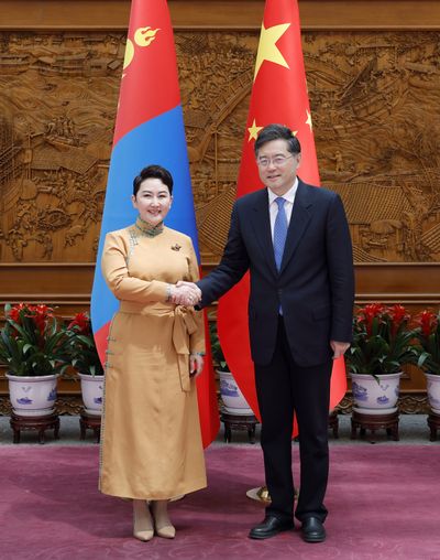 秦刚表示,中蒙是山水相连的好邻居、好朋友、好伙伴。中方始终从战略高度和长远角度把握中蒙关系,愿同蒙方一道,落实好两国元首重要共识,在涉及对方核心利益和重大关切问题上相互支持,不断增进政治互信和国民友好,深度对接发展战略,持续深化共建“一带一路”、矿产、互联互通等领域合作,共建和平共处、守望相助、合作共赢的两国命运共同体。
