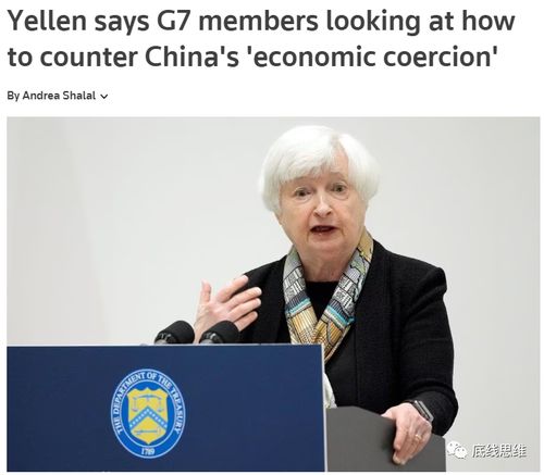 这所谓的“应对经济胁迫”的对象是谁,不言而喻,毕竟美国财长耶伦在本月11日已公开表示“美国担忧中国对其他国家使用经济胁迫”,并称G7的其它几个发达经济体成员国也有同样的担忧,为此美国正和其它G7国家商议如何对中国的境外投资实施进一步的、更有针对性的限制措施。