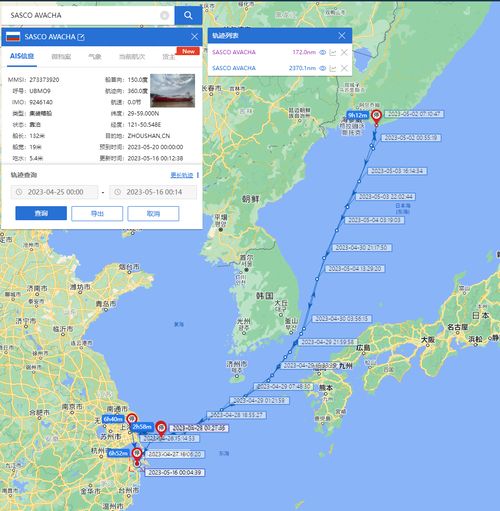 船舶从中国东南沿海港口到符拉迪沃斯托克港(海参崴港)的航行轨迹(图/船讯网)