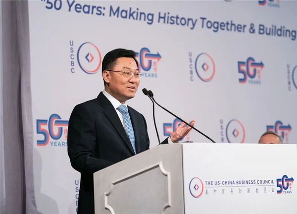 2023年6月7日,中国驻美国大使谢锋应邀出席美中贸易全国委员会为其履新举行的欢迎活动并发表主旨演讲。图源:中国驻美国大使使馆网站