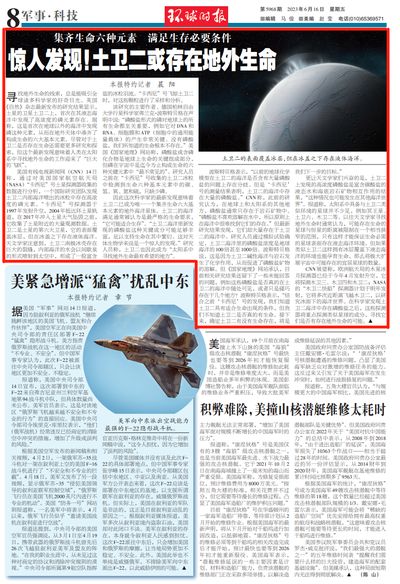 寻找地外生命的线索,总是能吸引全球诸多科学家的好奇目光。英国《自然》杂志最新发布的研究结果显示,土星的卫星土卫二上,首次在其液态海洋中发现了高浓度的磷元素存在。据称,这是首次在地球以外的海洋中发现磷这种元素,从而在地外天体中凑齐了构成生命的六大基本元素。尽管对于土卫二是否存在生命还需要更多研究和探索,但这个最新发现意味着人类在太阳系中寻找地外生命的工作迎来了“巨大的飞跃”。