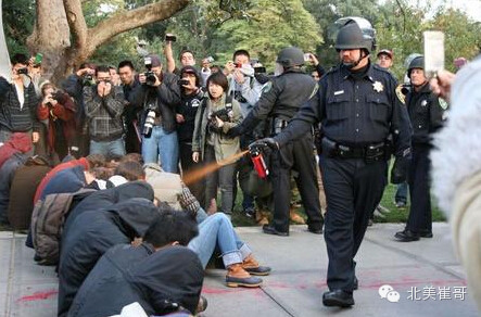 美国警察就是这样喷辣椒水的,请香港学生骂他们独裁专制呀。