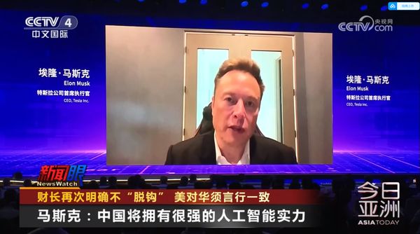 美国著名企业家马斯克当天以视频连线方式出席大会时表示,自己一直非常钦佩中国人民的智慧和干劲。中国一旦下定决心,一定能把某个产业做得很好,人工智能产业也不例外。他相信,中国将拥有很强的AI实力。