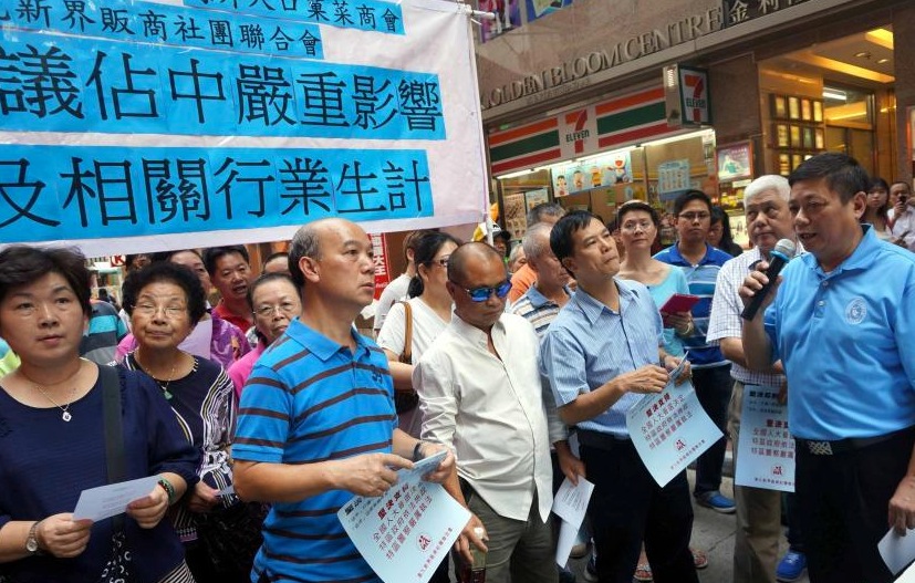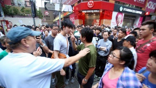 △10月4日,一批在旺角区小商户愤怒指责参与非法“占中”的青年学生。