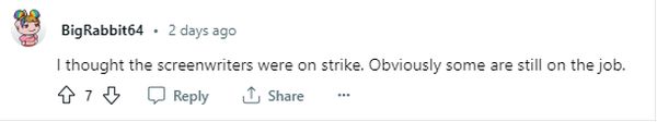 有人讽刺:“我以为编剧们罢工了。显然有些人还在工作。”