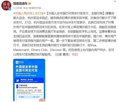 据中新社“国是直通车”7月21日报道,随着成都大运会、杭州亚运会临近,越来越多的境外游客来到中国,衣食住行都少不了移动支付。21日,杭州亚运会官方支付合作伙伴支付宝表示,此前已经完成了对境外用户在中国使用移动支付的支持。