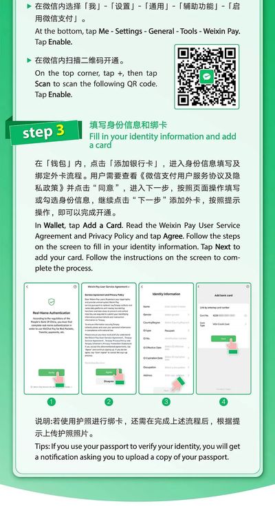 Q: 境外人士可使用什么证件开通微信支付?