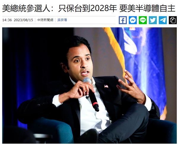 台媒并不意外地抓住了拉马斯瓦米这番言论的重点,纷纷以“美总统参选人:只保台到2028年”、“美总统参选人:保卫台湾直到美国半导体独立”等为标题对此予以报道。