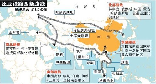 印度的地理位置非常重要,居连接东亚、东南亚,和西亚的南亚次大陆的中心位置。如果中国能参与印度的高铁项目,就会在整个泛亚铁路的建设上发挥重要作用。前些天,泰国军政府刚刚宣布继续修建与中国相连的铁路。尽管它决定把速度由200公里一小时降为160公里一小时,但是决定轨宽采用中国使用的国际标准。同时,中国巴基斯坦经济走廊的一项重要内容是喀什与瓜达尔港之间中巴铁路,可以预期它将采用中国标准。中缅铁路由于缅甸政局的变化遭遇暂时的挫折,但只要中国能够拿下印度高铁市场,将对缅甸形成较大的压力。中缅铁路上马将指日可待。从很多方面来说,拿下印度高铁市场对中国领导泛亚铁路的建设无疑具有十分重要战略意义。