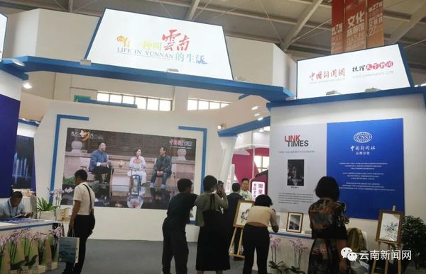 中国新闻社云南分社展台吸引逛展客人打卡。