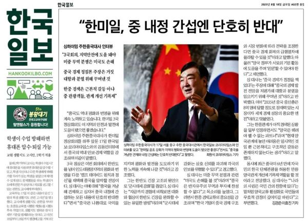 8月18日,《韩国日报》《韩国时报》刊登对邢海明大使的联合专访。邢海明大使在采访中回顾中韩建交31周年来的发展成就,展望两国关系未来发展方向,并就中韩经贸合作、中国经济形势、韩美日领导人会谈、中国公民赴韩团队游等问题回答记者提问。采访全文如下: