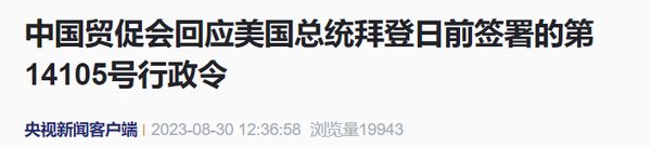 中国贸促会回应美国总统拜登日前签署的第14105号行政令