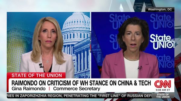 雷蒙多接受CNN采访,就对华出售芯片表态。视频截图