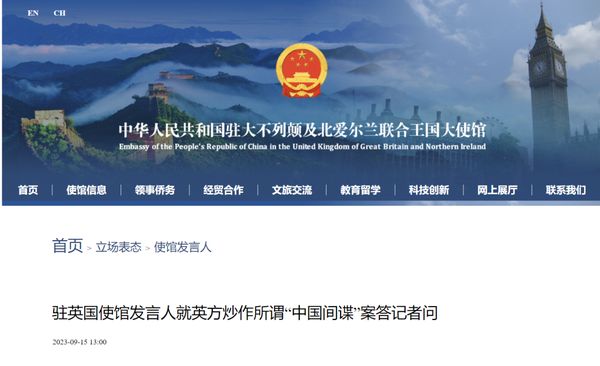驻英国使馆发言人就英方炒作所谓“中国间谍”案答记者问