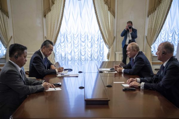 当地时间2023年9月20日,俄罗斯总统普京在圣彼得堡会见中共中央政治局委员、中央外办主任王毅。