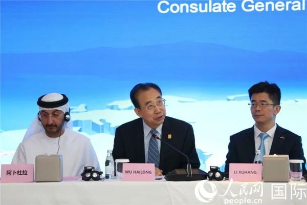 图为中国驻迪拜总领事李旭航致辞。人民网记者 任皓宇摄