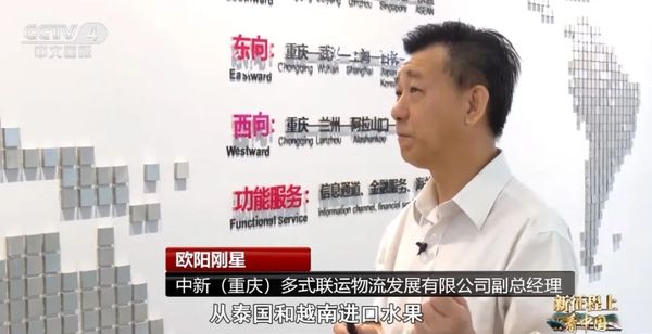 (我们)帮忙这些客户,从泰国和越南进口水果,通过陆海新通道直接拉到重庆来分销,六七天到。(重庆产的)橙子、猕猴桃,这些(水果商)都在找我们帮助他们出口,在新加坡找市场。