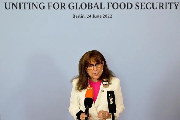 ▲资料图片:当地时间2022年6月24日,德国柏林,联合国贸易和发展会议秘书长蕾韦卡·格林斯潘在全球粮食危机会议上发表声明。(视觉中国)