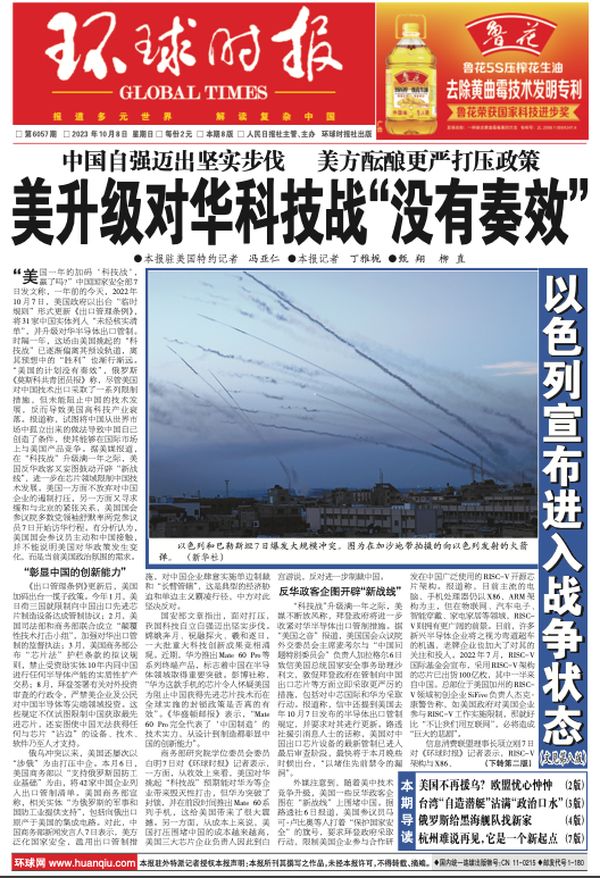 “美国一年的加码‘科技战’,赢了吗?”中国国家安全部7日发文称,一年前的今天,2022年10月7日,美国政府以出台“临时规则”形式更新《出口管理条例》,将31家中国实体列入“未经核实清单”,并升级对华半导体出口管制。时隔一年,这场由美国挑起的“科技战”已逐渐偏离其预设轨道,离其预想中的“胜利”也渐行渐远。“美国的计划没有奏效”,俄罗斯《莫斯科共青团员报》称,尽管美国对中国技术出口采取了一系列限制措施,但未能阻止中国的技术发展,反而导致美国高科技产业衰落。报道称,试图将中国从世界市场中孤立出来的做法导致中国自己创造了条件,使其能够在国际市场上与美国产品竞争。据美媒报道,在“科技战”升级满一年之际,美国反华政客又妄图鼓动开辟“新战线”,进一步在芯片领域限制中国技术发展。美国一方面不放弃对中国企业的遏制打压,另一方面又寻求缓和与北京的紧张关系,美国国会参议院多数党领袖舒默率两党参议员7日开始访华行程。有分析认为,美国国会参议员主动和中国接触,并不能说明美国对华政策发生变化,而是当前美国政治氛围的需求。