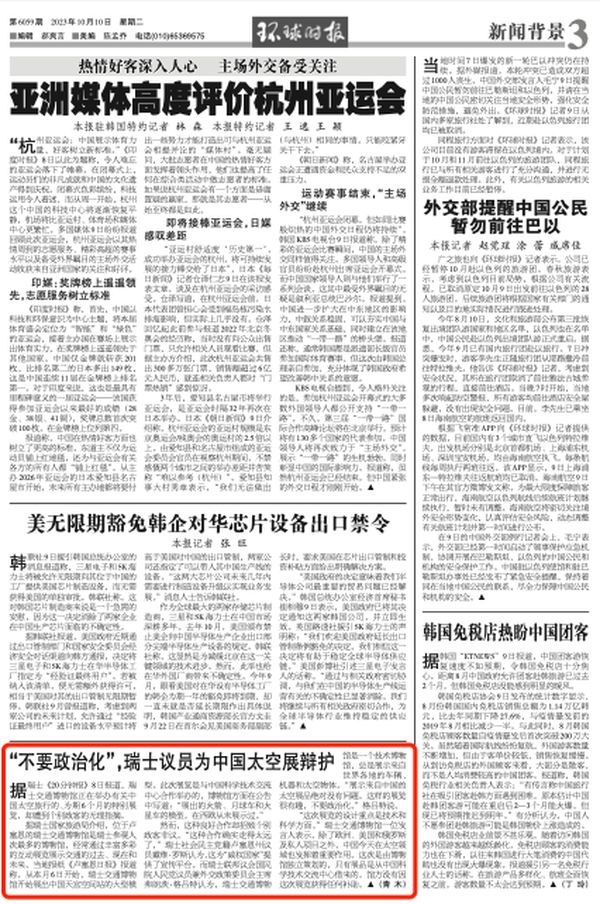 中国太空展在瑞士招个别政客非议,当地议员辩护:展览没问题,不要政治化据瑞士《20分钟报》8日报道,……